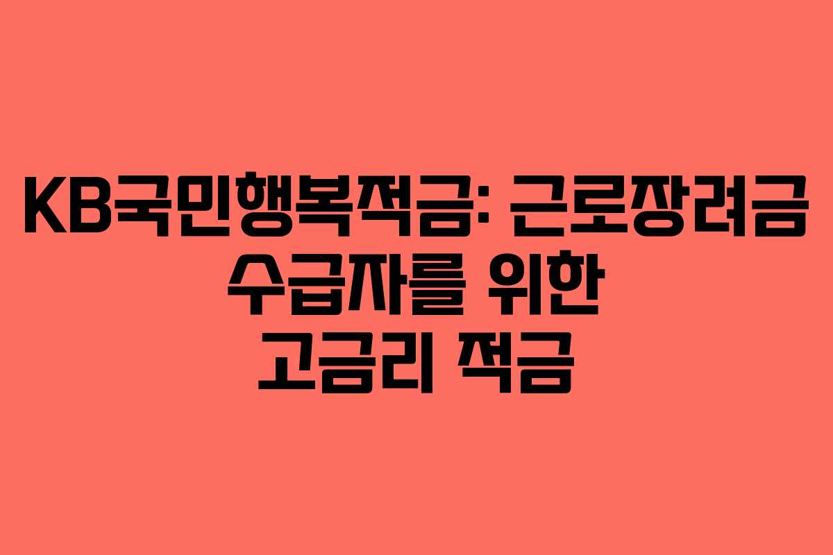 고금리 적금 상품인 KB국민행복적금은 근로장려금 수급자에게 안정적인 재정 관리를 도와줄 수 있는 좋은 선택입니다.