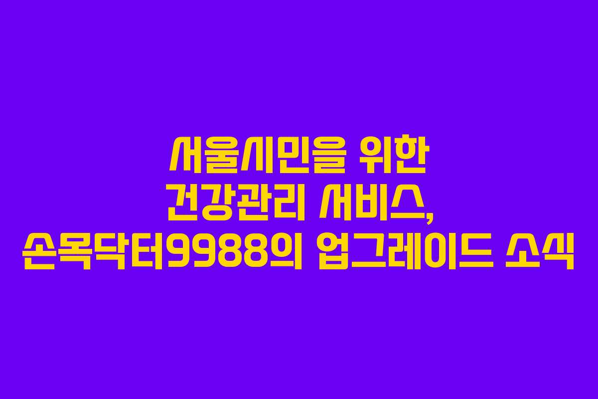 서울시민 100만 명 이상이 참여하고 있는 건강관리 서비스 ‘손목닥터9988’이 오는 9월 중으로 서비스 업그레이드를 진행합니다. 이번 업그레이드는 개인형 맞춤 건강 정보 제공을 목표로 하며, 보다 향상된 건강 관리 서비스를 통해 시민들의 건강을 적극 지원할 예정입니다.