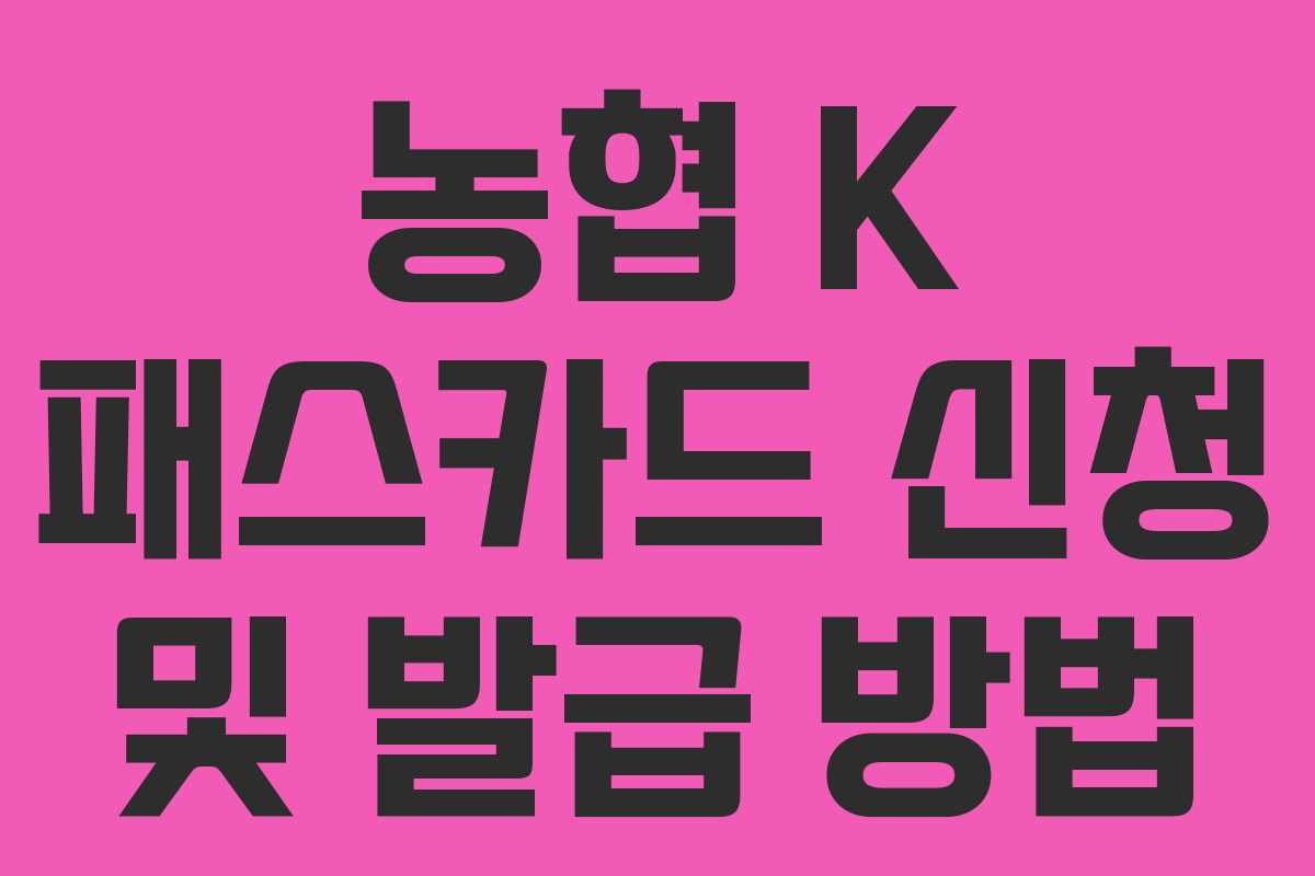 농협 K-패스카드는 대중교통 이용 시 매우 유용한 체크카드입니다. 이번 포스트에서는 농협 K-패스카드를 신청하고 발급받는 방법에 대해 자세히 설명하겠습니다.