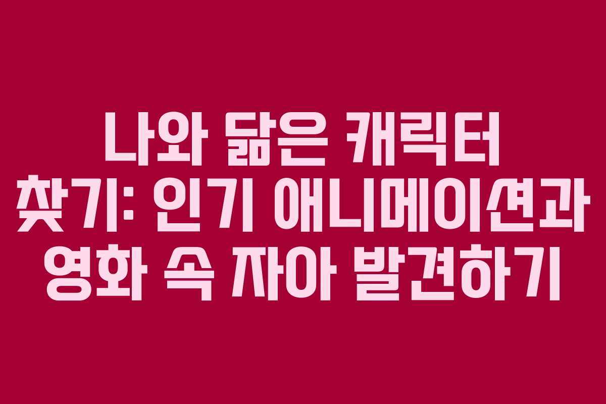 나와 비슷한 캐릭터를 찾는 것은 재미있고 흥미로운 경험이 될 수 있습니다. 다양한 테스트를 통해 자신을 돌아보고, 좋아하는 캐릭터와의 공통점을 발견할 수 있는 기회를 제공합니다. 이번 포스팅에서는 여러 애니메이션과 영화 속 캐릭터 테스트를 통해 여러분이 닮은 캐릭터를 알아보겠습니다.