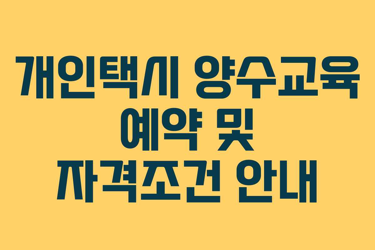 개인택시를 운영하고자 하는 분들을 위해 개인택시 양수교육의 예약 방법과 자격조건을 상세히 설명드리겠습니다. 개인택시 양수교육은 택시기사로서의 자격을 갖추기 위해 필수적으로 이수해야 하는 과정입니다.