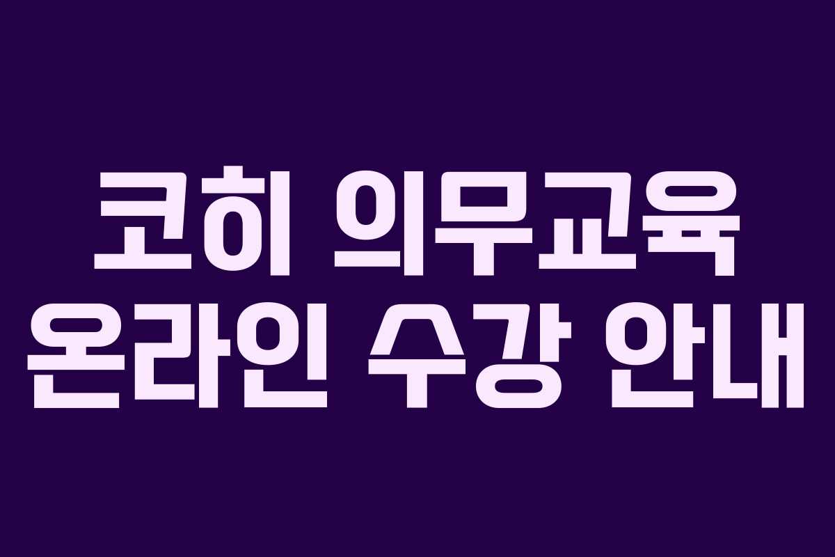 코히 의무교육은 온라인으로 제공되며, 수강생은 웹사이트를 통해 쉽게 신청할 수 있습니다. 교육 과정은 비대면으로 진행되며, 수료 후 수료증이 발급됩니다.