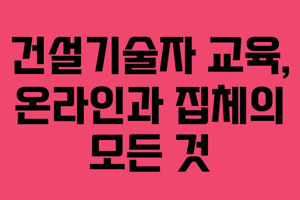 건설기술자 교육은 필수적인 과정으로, 대부분의 건설 관련 종사자들이 반드시 이수해야 합니다. 이번 글에서는 온라인 교육과 집체 교육의 특징, 필요성, 그리고 실질적인 경험을 공유하겠습니다.