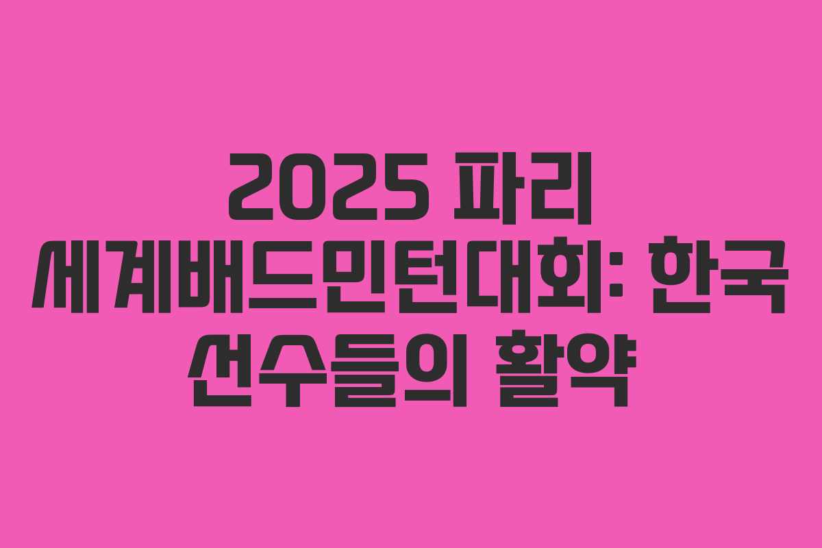 2025 파리 세계배드민턴대회가 시작되면서 한국 선수들이 주목받고 있습니다. 특히 안세영 선수와 서승재-김원호 조가 기대를 모으고 있는데, 이들의 경기는 배드민턴 팬들에게 큰 이목을 끌고 있습니다.
