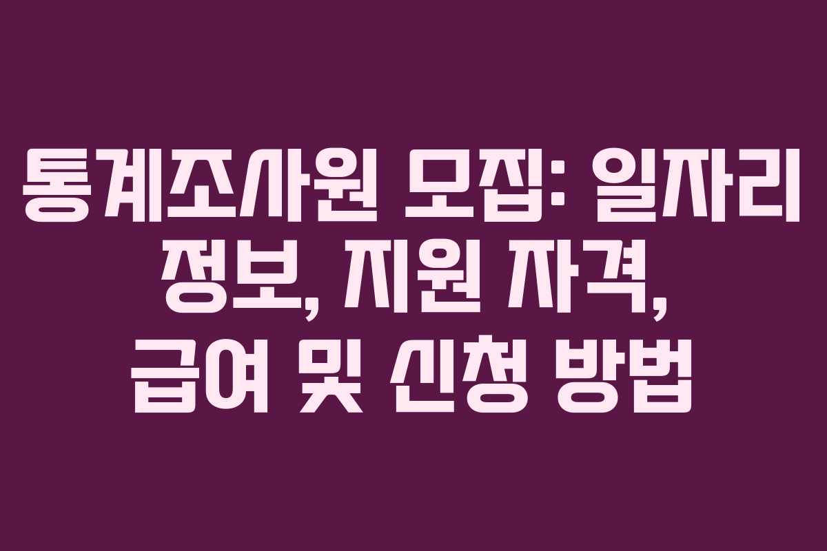 통계조사원은 국가 정책 수립을 위한 중요한 역할을 수행하는 직무로, 다양한 사회 경험을 쌓을 수 있는 기회를 제공합니다. 이 글에서는 통계조사원에 대한 정보, 지원 자격, 급여, 신청 방법 등을 자세히 알아보겠습니다.