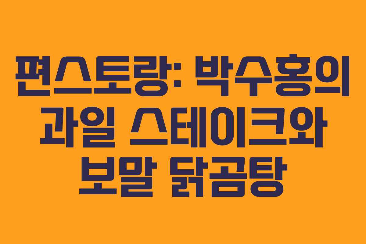 2023년 2월 10일 방송된 편스토랑에서는 박수홍이 특별한 요리를 선보였습니다. 이번 회차에서는 기억에 남는 과일 스테이크와 아이들을 위한 보말 닭곰탕을 준비하는 과정을 소개합니다.