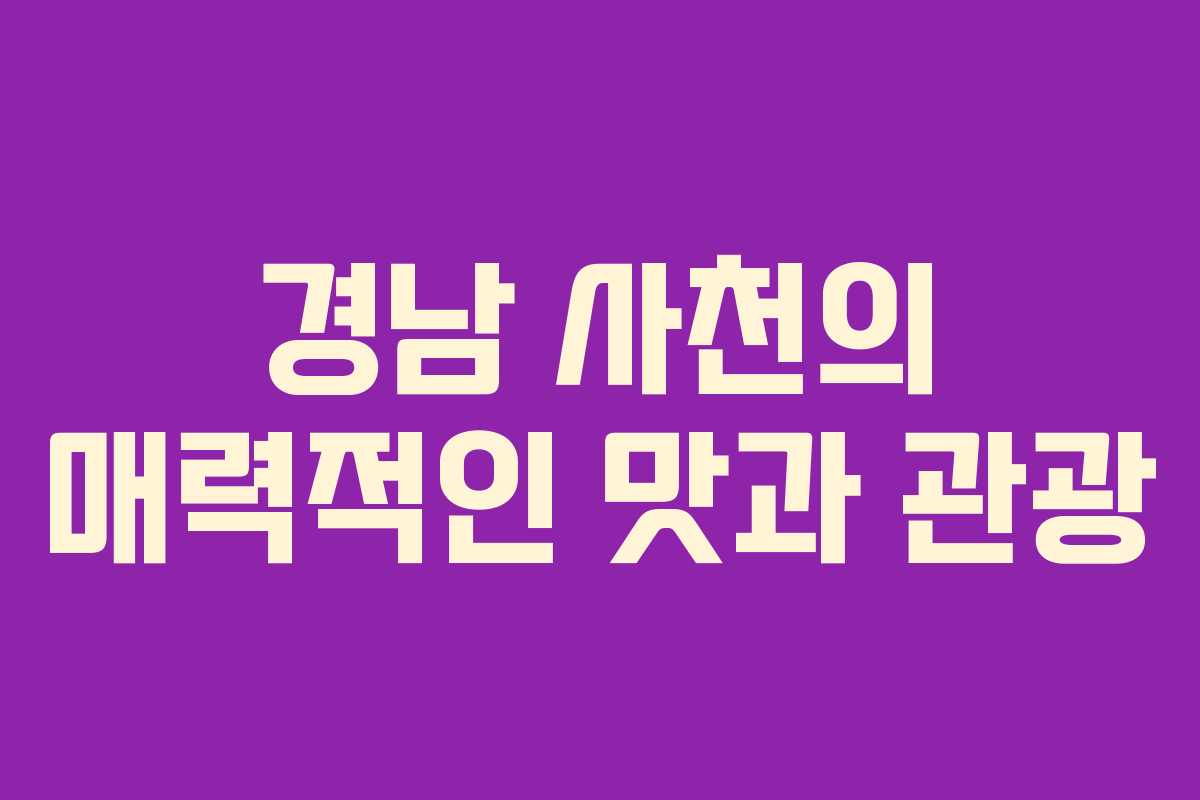 경남 사천은 아름다운 자연과 함께 다양한 미식 경험을 제공합니다. 케이블카를 타고 멋진 경치를 감상하며, 신선한 해산물과 지역 특산물을 맛볼 수 있는 곳입니다.