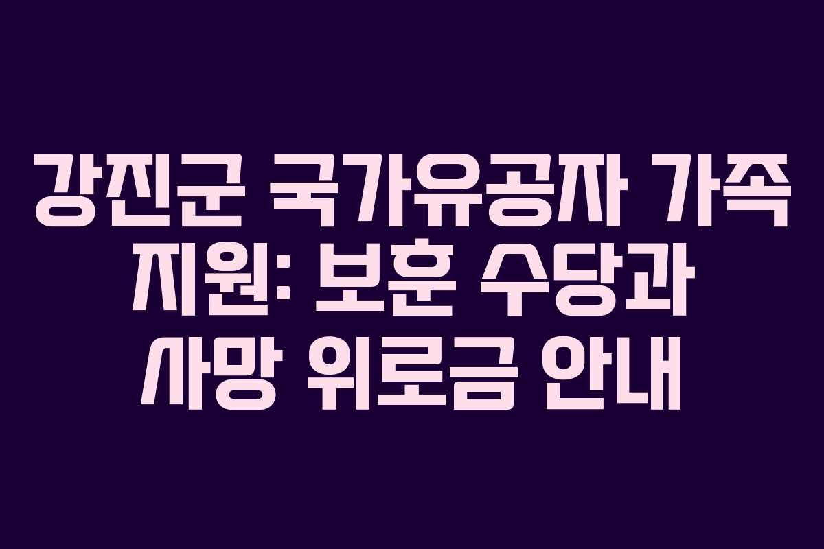 강진군에서는 국가를 위해 헌신한 분들과 그 가족을 지원하기 위해 보훈 수당과 사망 위로금 제도를 운영하고 있습니다. 이 제도는 경제적 부담을 덜어주기 위해 마련된 것으로, 간편한 신청 절차를 통해 필요한 도움을 받을 수 있습니다.