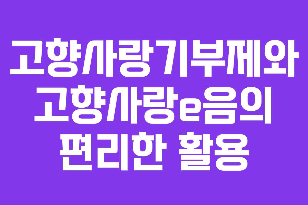 고향사랑기부제는 개인이 고향을 지원할 수 있는 좋은 기회를 제공합니다. 최근 고향사랑e음 시스템이 개선되어 기부 과정이 더 간편해졌습니다. 이제 여러분도 손쉽게 고향 발전에 동참할 수 있습니다.