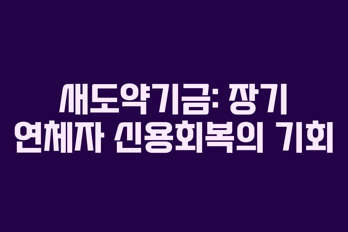 장기 연체로 어려움을 겪고 있는 분들에게 희망이 되는 새도약기금에 대해 소개합니다. 이 기금은 7년 이상 무담보 채무를 가진 개인을 지원하고, 신용회복의 기회를 제공합니다.