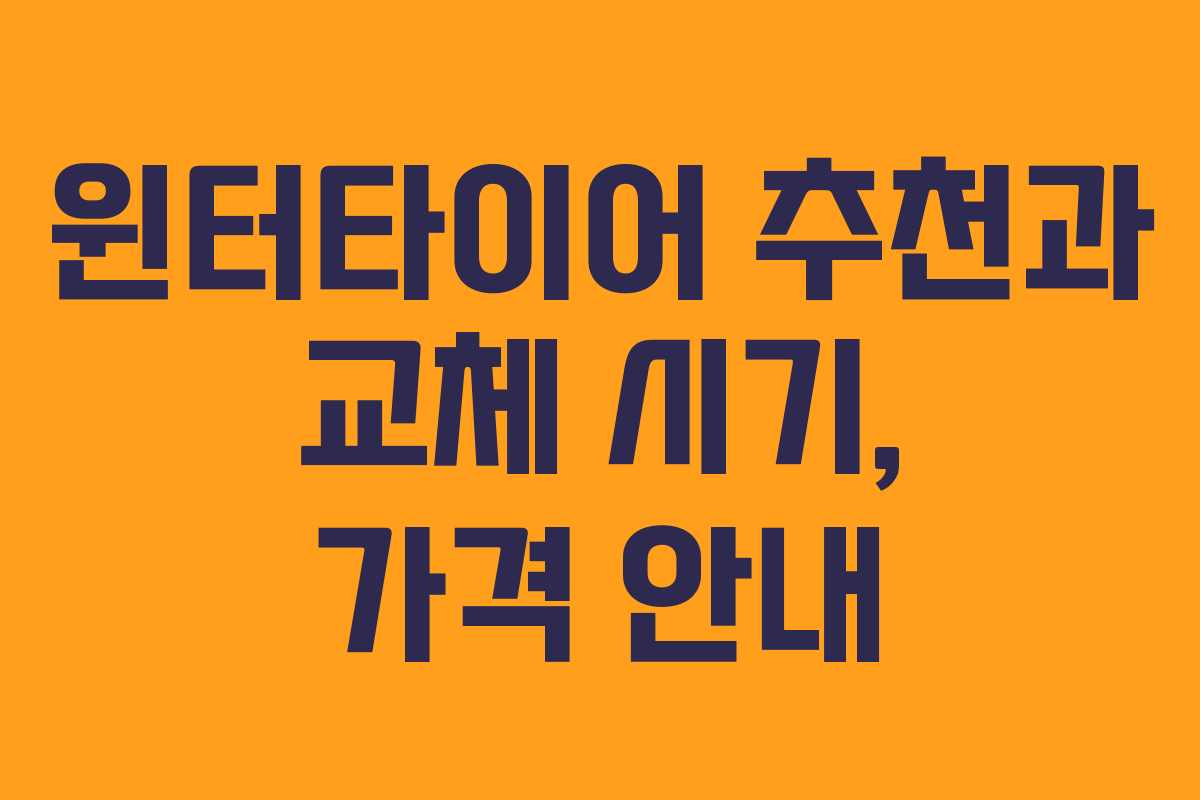 겨울철이 다가오면서 자동차의 안전성을 위해 윈터타이어로의 교체를 고려하는 분들이 많습니다. 이번 글에서는 윈터타이어의 필요성과 추천 제품, 교체 시기 및 가격에 대해 알아보겠습니다.