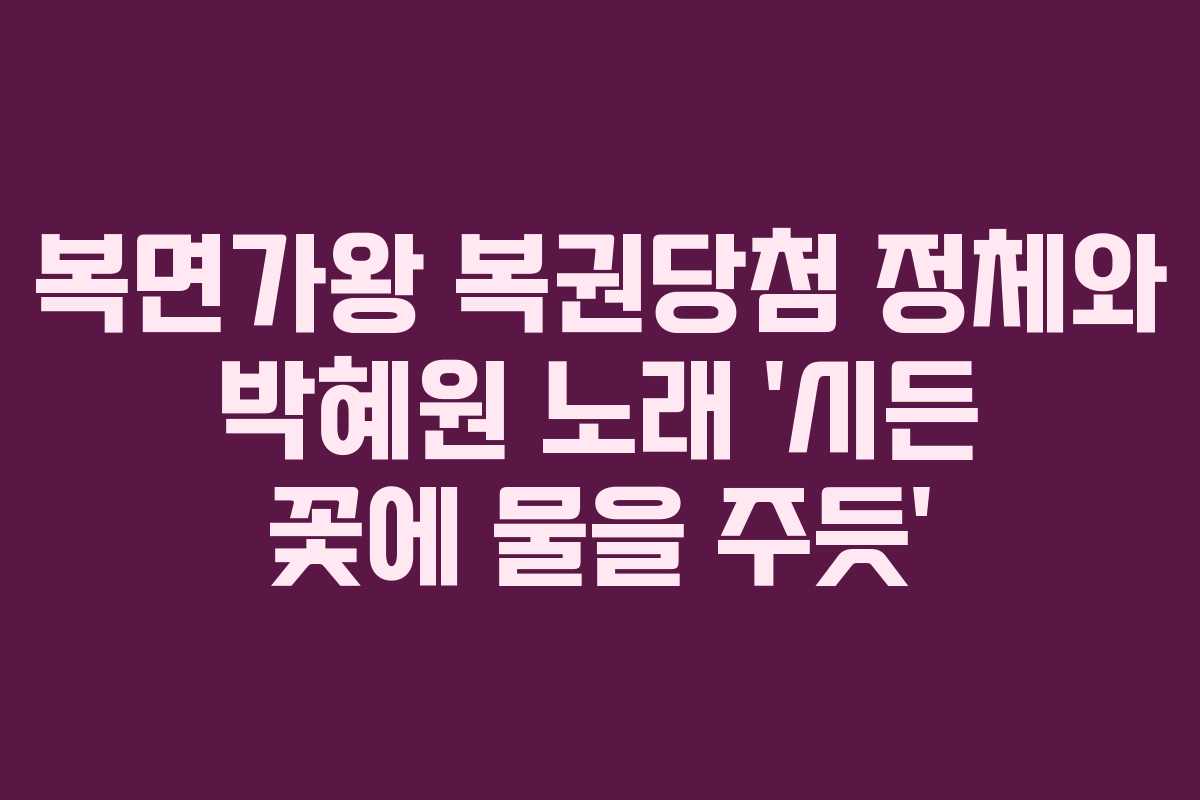 복면가왕에서 복권당첨의 정체와 박혜원의 원곡 ‘시든 꽃에 물을 주듯’에 대해 알아보겠습니다. 이 곡은 감성적인 가사와 멜로디로 많은 사랑을 받고 있으며, 그 정체가 무엇인지 궁금해하는 팬들이 많습니다.
