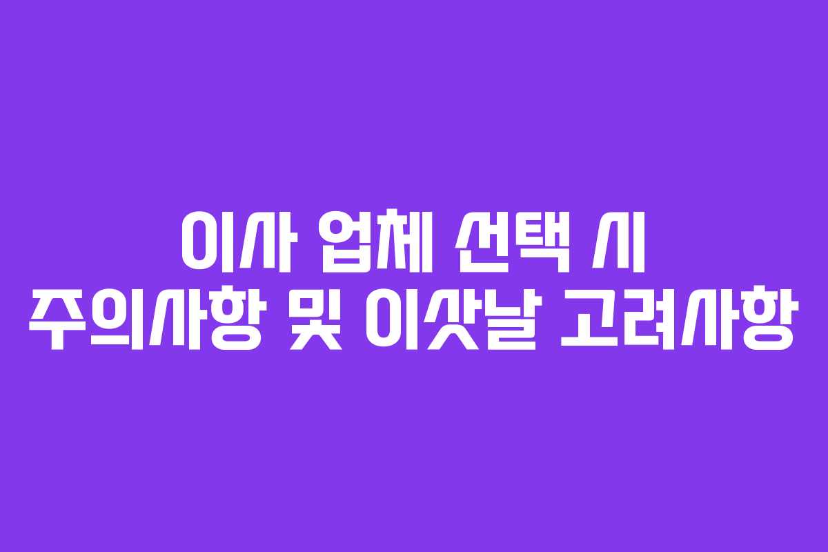이사는 새로운 시작을 의미하지만, 준비할 것이 많아 스트레스를 유발할 수 있습니다. 특히 이사 업체를 선택할 때 주의해야 할 점들이 많아, 이를 미리 숙지하는 것이 중요합니다.