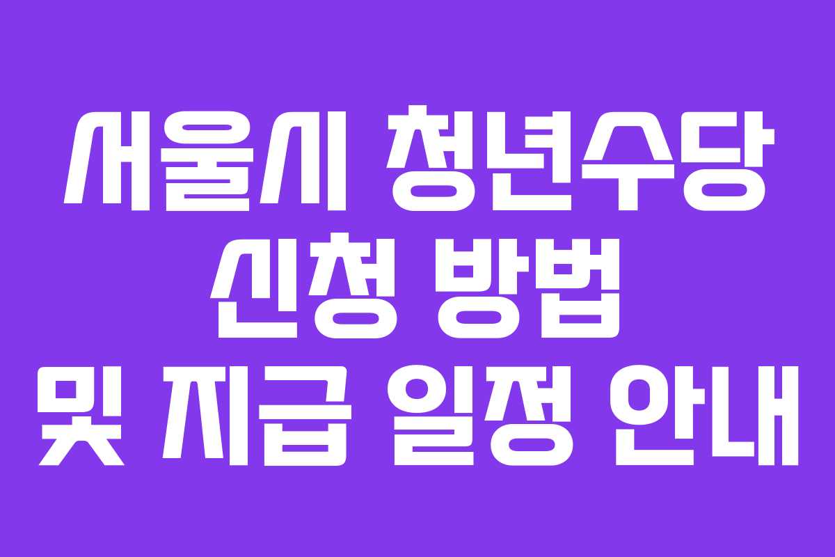서울시 청년수당 신청 방법 및 지급 일정 안내