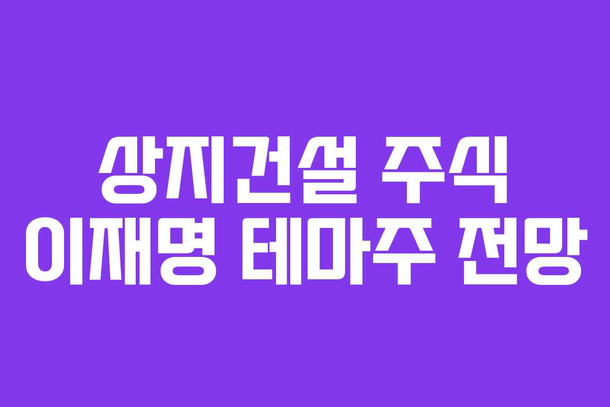 상지건설은 최근 정치 테마주로 주목받으며 주가가 놀라운 상승세를 보이고 있습니다. 이번 글에서는 상지건설의 주가 전망, 이재명 테마주와의 관계, 그리고 투자 시 주의해야 할 점들을 살펴보겠습니다.