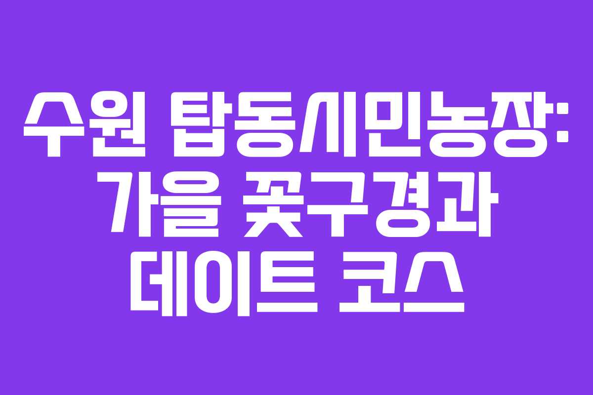 가을의 선선한 날씨는 여행하기에 더없이 좋은 조건을 제공합니다. 수원에서 당일치기로 즐길 수 있는 매력적인 장소인 탑동시민농장을 소개합니다. 이곳은 아름다운 꽃과 자연을 동시에 즐길 수 있어 많은 이들이 찾는 명소입니다.